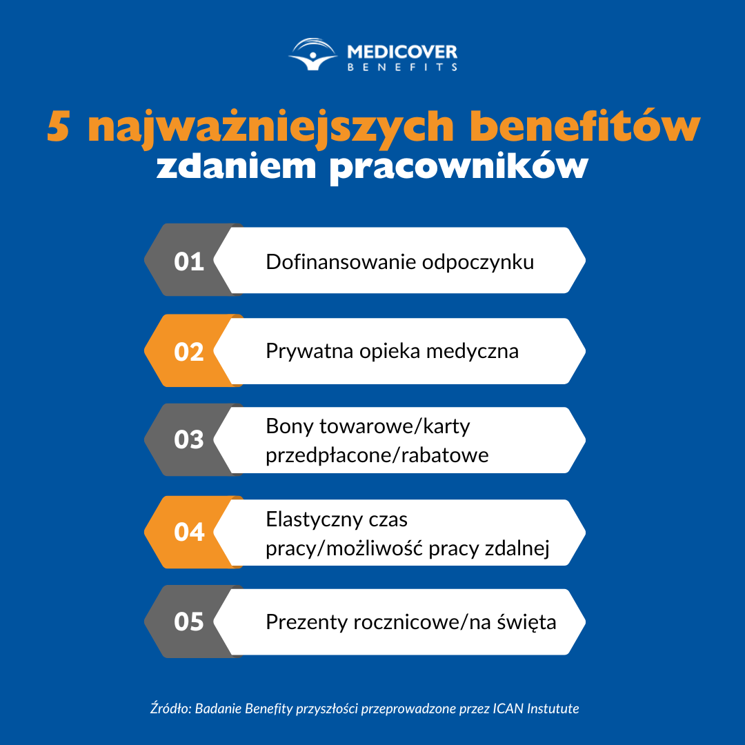 5 najważniejszych benefitów pracowniczych zdaniem pracowników1: